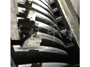 空心軸上密集排列著楔型中空漿葉,熱介質(zhì)經(jīng)空心軸流經(jīng)漿葉。單位有效容積內(nèi)傳熱面積很大,熱介質(zhì)溫度從-40℃到320℃,可以是水蒸汽,也可以是液體型:如熱水、導(dǎo)熱油等。間接傳導(dǎo)加熱,沒有攜帶空氣帶走熱量,熱量均用來加熱物料。熱量損失僅為通過器體保溫層向環(huán)境的散熱。楔型漿葉傳熱面具有自清潔功能。物料顆粒與楔型面的相對運(yùn)動(dòng)產(chǎn)生洗刷作用,能夠洗刷掉楔型面上附著物料,使運(yùn)轉(zhuǎn)中一直保持著清潔的傳熱面。漿葉干燥機(jī)的殼體為Ω型,殼體內(nèi)一般安排二到四根空心攪拌軸。殼體有密封端蓋與上蓋,防止物料粉塵外泄而充分發(fā)揮作用。